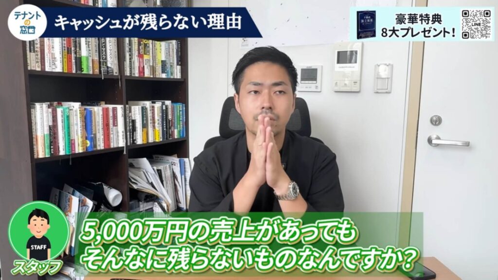 「不動産屋として独立して、売上が5000万円もあれば、さぞかし手元にお金が残っているのだろう」そのようなイメージを持つかたは非常に多いです。しかし、12月決算を終えてクラウド会計ソフトで数字を整理してみると、意外なほど手元にキャッシュが残っていない現実に直面しました。